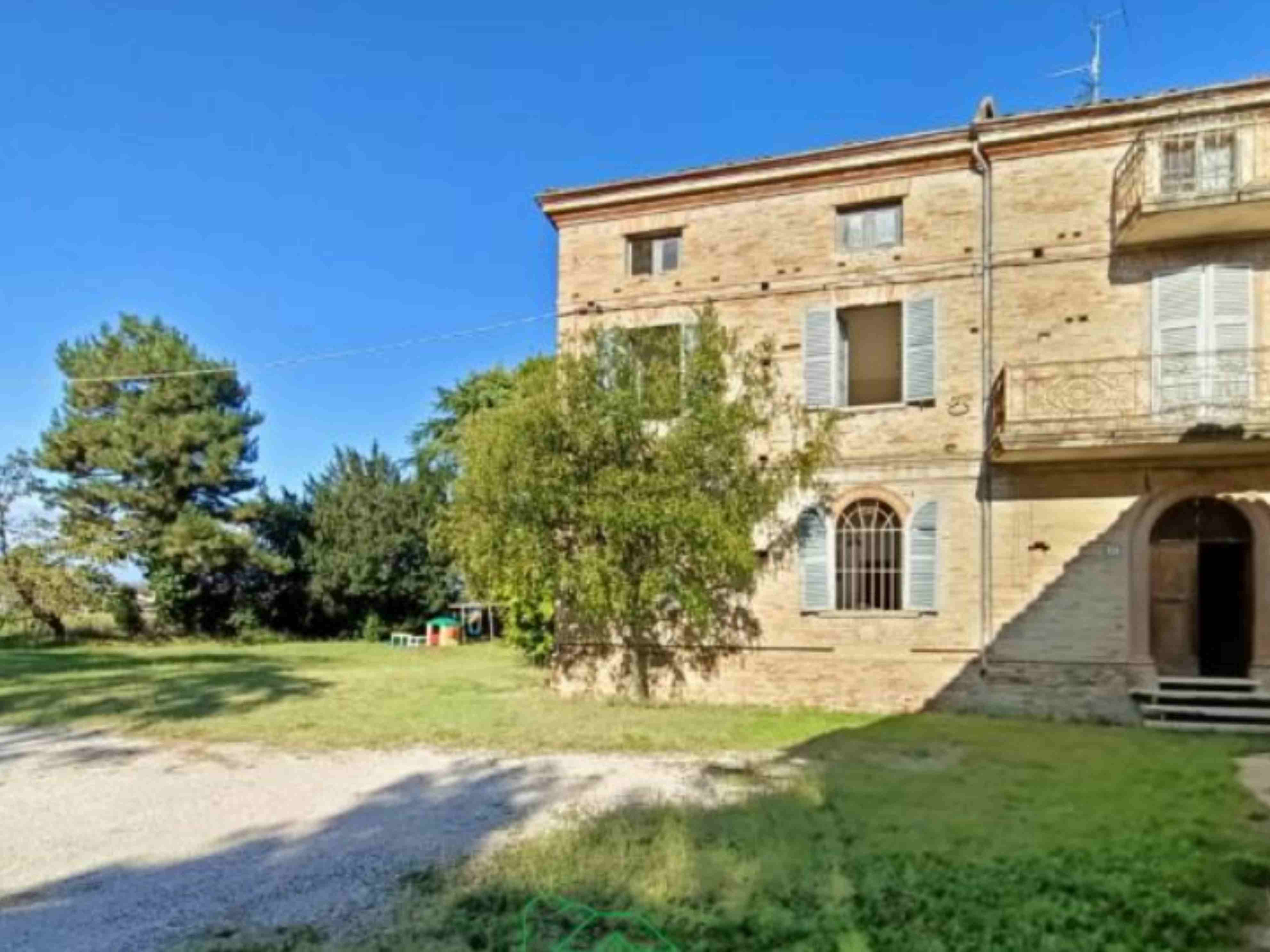 In FANO, in the quiet village of Sant'Andrea in Villis, nestled in the rolling hills of the Marche region and just a few kilometers from the sea, a farmhouse in need of renovation is for sale. The property is on two levels and includes land of almost 4 hectares, partially planted with 130 olive and fruit trees.